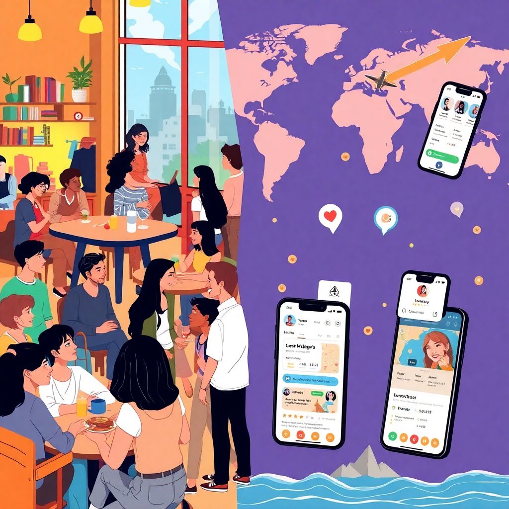 Если сильно упростить, сегодня есть два базовых пути: знакомиться «по‑старинке» — в хостелах, кафе, на экскурсиях — или заходить через онлайн‑инструменты, которые почти как навигатор подсказывают, с кем тебя может свести судьба. Оффлайн‑формат даёт плотный, эмоциональный контакт: общие приключения, непридуманные эмоции, внезапные истории. Но он менее предсказуем: нужно ловить момент и не стесняться подойти первым. Цифровой подход — это фильтры по интересам, языку, формату поездки, а иногда и по уровню бюджета. Он структурирует хаос, но может сделать общение чуть более «товарным», когда людей пролистывают, как меню. Оптимальная стратегия — не выбирать одно, а комбинировать.